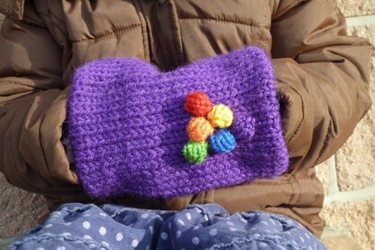 This cute handwarmer or muff isn't just decorative - the double-layer and insulating air gap will keep little fingers warmer than mitts or gloves alone. The construction means it grips gently onto wee hands so there's no need for a choke-hazard neck cord.