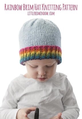 The Rainbow Brim hat knitting pattern is a quick, easy and colorful baby hat pattern. You'll love the bright rainbow colors that make up the folded brim of this cute little baby hat. It's super quick and simple to knit and you'll finish it in jiffy! This cute little rainbow baby hat is knit in the round.
