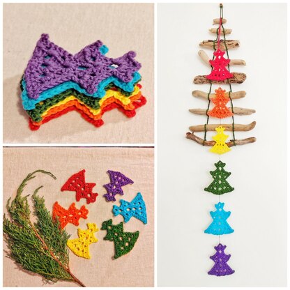 The Rainbow Christmas Tree is a perfect last-minute Christmas project. They might be small in stature, but big in impact! The pattern can be used to make little gorgeous bright and cheerful Christmas trees, that will cheer up your Xmas day. They can be hung on your tree, to make garland or a festive decoration for your holiday table, and used as gift tags on presents. The pattern includes instructions and some helpful photos to make crochet trees, as well as bonus DIY - How to Make Bohemian Christmas Trees from Pampas Grass! You can use any yarns as well as yarn leftovers. Must be taken number of hook less than recommended for your yarn so that ornament is dense and will retain shape. SKILL LEVEL : Easy + ABBREVIATIONS: ★ slip st = slip stich ★ dc = double crochet ★ ch = chain ★ sc = single crochet ★ hdc = half double crochet ★ Picot = Ch 3, slip st in 3rd ch from hook.