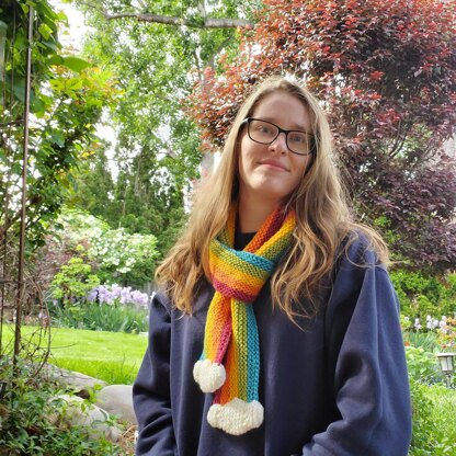 Rainbow Clouds Scarf Just a friendly reminder that behind those clouds there is a rainbow. This pattern is specifically designed for beginners using only basic knitting stitches and some increases and decreases. If you have ever wanted to start knitting this pattern is for you. The pattern includes both a written description of the techniques used to make the scarf and video links to tutorials. So there’s nothing from stopping you from knitting the Rainbow Clouds Scarf.