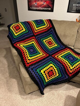 This is the digital crochet pattern for the Rainbow Connection Granny Square Blanket.