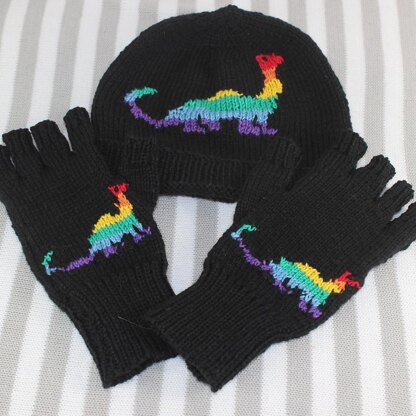 Rainbow Dinosaur Beanie and Short Finger Gloves