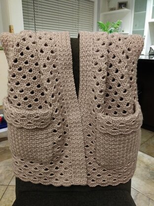 This cozy shawl pocket would be a beautiful addition to your Fall and Winter wardrobe. Great for those chilly evenings and to wear in the office on those cool winter days.