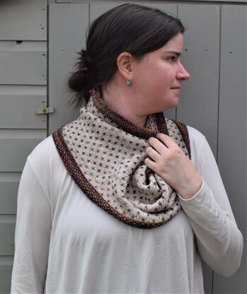 The cowl is knit in the round with 5mm (8US) circular (recommend 16” length) needles.