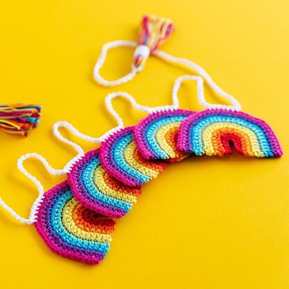 Choose bold colours or a soft gradient: this rainbow bunting is an absolute delight to create. The pattern is easy to follow so if you're a beginner, simply give it a try!