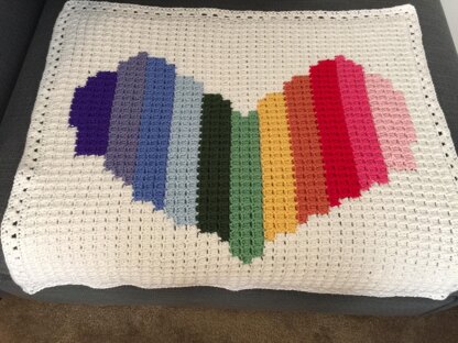 I came across a Rainbow Heart Quilted Wall hanging and thought that is would be a wonderful baby crocheted afghan. After much trial and error in choosing the best crochet stitch pattern and finding a technique of changing colors that did not show any yarn floats, I am happy to share this pattern with you. I crochet for a Children's Hospital in Northern California and I'm sure that this baby afghan will be a hit.