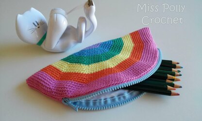 A fun, easy and versatile pattern to make, to brighten any day! It makes a handy zip-up pouch that can be used as a pencil case, hook case, or even as a small toiletry case. Ideal for using up brights and pastels in your yarn stash! The case is made using double crochet stitches, worked in the round in the amigurumi method, with simple colour changes, and finished with a fabric lining and zipper.