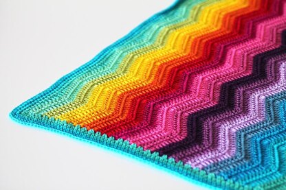 The rippling rainbow blanket is truly a play of colours! The ripples are soothing and relaxing to crochet, while the different colours provide the blanket with a big splash of colour. I chose to work this blanket with cotton, which has great stitch definition. This way, you can see the texture of the ripples even better.