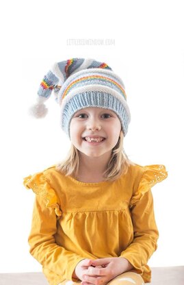 This adorable and fun Rainbow Stocking Cap knitting pattern is knit in the round and has alternating stripes of blue sky stockinette, purled white clouds and bright colorful rainbow stripes. You're going to have a blast knitting this hat for your favorite baby or toddler ( but beware, you'd better enjoy weaving in ends!).
