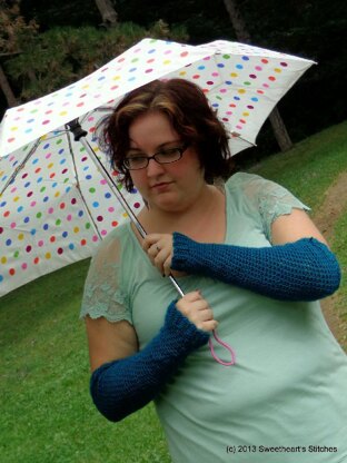 Perfect for a day indoors by the fire or a picnic on a cool autumn or spring day, these sleeves are both fashionable and cozy. Ribbed cuffs at the hand and upper arm make these opera-length fingerless gloves a little more casual, for every day wear.