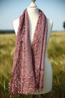 The world of Jane Austen inspired me. This rectangular shawl is knitted with two very close colors but it is possible to knit it with a single color. It begins with a provisional crochet cast-on. The garter stitch body of the shawl is worked back and forth as a rectangle. The lace part is worked in the round along the edges after picking up and knitting stitches along the sides of the rectangle.