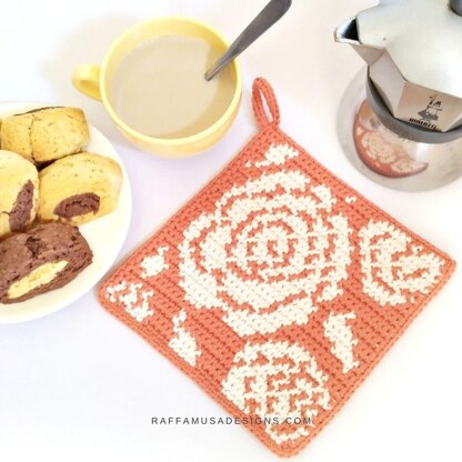 This tapestry crochet Rambler Roses Potholder is part of my "A Year of Potholders" collection.