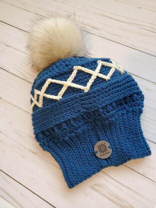 This is a semi slouch hat with a wide band and crisscross motif. It is so much fun to make and a great way to firm up those slip stitching skills. It is easily adjustable and you can add a pom pom or keep it off, it looks great both ways!