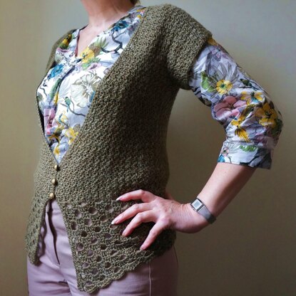 This warm weather cardigan is inspired by the simple shapes of clothing in south-east Asia. The clean lines make it a go-to piece for cool summer wear.