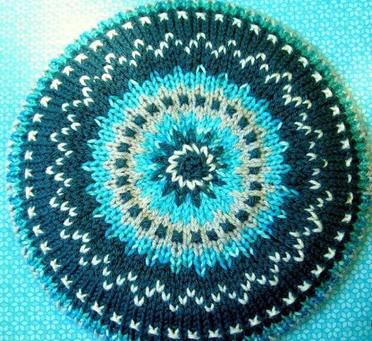 The Rapid Transit hat is knit in the round on 16" circular needles, using slip-stitch color changing - which is MUCH EASIER than Fair Isle color changing. Give it a try and see how much colorwork you can get with such little effort!  Pattern contains directions for Adult, Child, Toddler, and Baby sizes.