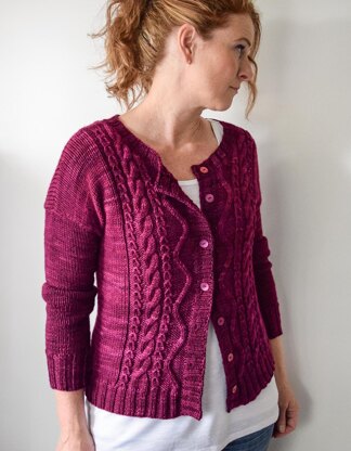 Raspberry Delight is knit from the top down, starting with the back to the underarm followed by the right and left fronts. Stitches are then joined together to knit the body. Stitches are picked up for the sleeves, the collar and finally the button bands. Cardigans are not your cup of tea? No problem! Turn this into a sweater by following the same instructions as for the cardigan until you get specific instructions for the sweater option.