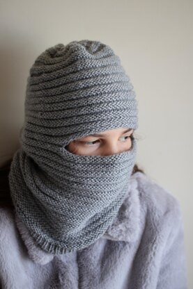 The balaclava is knit in the round.