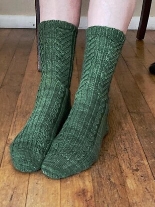 Twisted ribbing and flat-braid cables create superbly fitting unisex toe-up socks and matching gloves with dashing detailing!