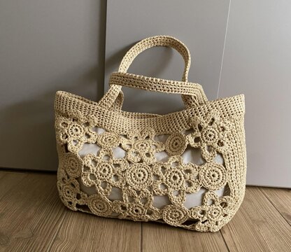 MATERIALS Raffia Crochet hook: 4 mm (US G-6) USED Yarn: Brand Name: Mondial Colour: Sand Composition: 100% Viscose Raffia Quantity: 6 balls each 50 g. (1.76 Oz) with the length of 100 mt (109 yds).