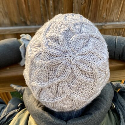 Techniques used: Knitting in the round, decreasing, cabling. The cabling is a bit organic and requires attention to be paid to the chart or written directions.