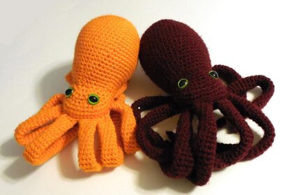 I love octopuses and wish I could have my own as a pet, so I crocheted one for myself. He can sit nicely on a counter or even sit on your shoulder, watching the world with his shiny eyes.