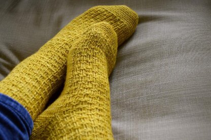 Unisex socks worked from the toe-upwards in an easy to memorise stitch pattern using just knit and purl stitches. Garter stitch short-row heels and toes add to the overall texture of this super stretchy and well-fitting pattern written in 5 sizes. Stitch pattern is both charted and written in full. Techniques used include provisional cast-on and garter stitch short rows. Instructions and links to tutorials are included in the pattern. Note: Model is wearing size S, her foot width is 23cm at the widest point and there is zero ease. If you would like more stretch in your sock then knit the next size up.