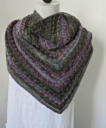 Reba Cowl is a triangular bandana shape, worked from the top down. The cowl is worked in slip stitch stripes, alternating colors. The Berroco Sesame yarn is a long pattern striping yarn with many colors, choose two different colorways for the cowl.