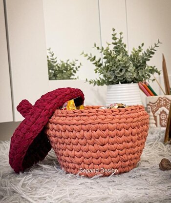 - This pattern works with any sturdy super chunky yarn. Sample photo is done with T-shirt Yarn Circulo premium, super bulky in clay and spicy.