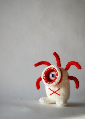 Red eye sweet and funny monster - knitting pattern (knitted round) The toy is knitted round and that is why the pattern is recommended for Advanced Beginner Knitters. Toy related knit stitch
