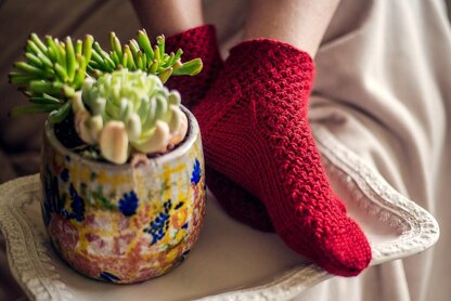 These cute textured socks knit up very quickly in aran weight yarn, and are oh SO cozy!