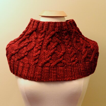 The cables on this cowl are easy to create using basic stitches (knit, purl, k2tog, p2tog) and basic cable stitches. The cowl is worked with circular needles from the bottom to the top. The bottom is slightly wider than the top.