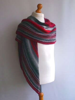 Garter stitch stripes, my favourite. Short rows are used to great effect to create a curve of colour and a generous wingspan.