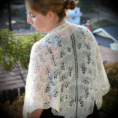 The Reflection & Refraction shawl has a heart-shaped shawl construction and uses varying shades of beads to create a beautiful rainbow effect. The stitches used create an undulating arced pattern.