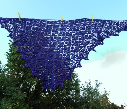 One knitter added an extra repeat of Chart B to get a larger shawl, which used 484 yards of sock yarn.