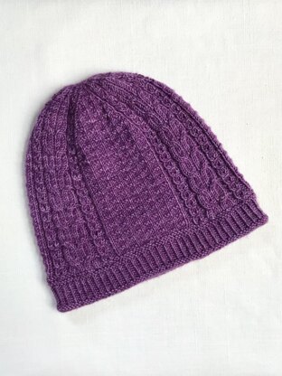 The interplay of cables, knot stitches, and texture create a lovely fabric for this hat. The matching Regis Mitts and Regis Cowl complete the collection for a classic set of wearable accessories.