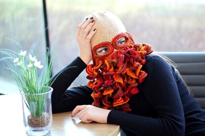 This pattern is available only in teen and adult sizes – mostly because having a ski mask with eye openings only and with tentacles would be too distressing for a younger child to have on for prolonged periods of time.