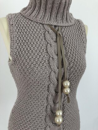 Ein schöner warmer Pullunder mit feinen Details und einem auffallendem Rollkragen. Wer das Bändchen mit den großen Perlen nicht mag, lässt sie einfach weg. Einfach und schnell zu stricken! Quick and easy pullunder with cables. If you dont like the Ribbon, leave it away.