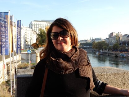 A garter stitch scarf worked in aran weight yarn. It is fun and easy to knit, honestly.