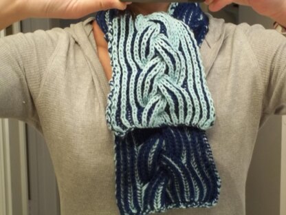 I should note that this is more of a “scarfette” or ascot, if you will. If you would prefer a longer, traditional length scarf, you should use 2 skeins each of the Cascade, or a different brand that has more yardage per skein.