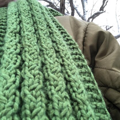 This unisex scarf has cables that appear on both sides for a scarf that looks great no matter how it is laying. The slipped stitches provide a neat finish to the edges.