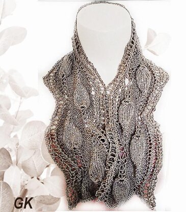 Reversible Leaf It is a reversible scarf to use as an accessory item on chilly summer evenings. The scarf is an easy project knitted with linen blended yarn, The directions are for the odd rows only on the even rows knit or purl as they appear, purl yarn overs, knit all make 11, and knit front and back for all yarn over twice(Yo2) on the even rows,