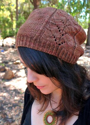 A swirling leaf pattern that flows effortlessly from a twisted rib brim is further accentuated by the understated reverse-stockinette background. This design started with the simplest of sketches, barely even an idea, and the curiosity of whether I could work the lace in reverse and still maintain its integrity. Reversus is cleverly engineered so that you knit the entire hat inside-out, purling the lace and knitting the rest!