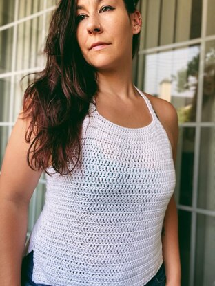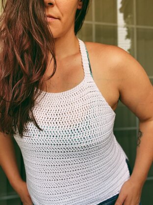 The Rhythm Tank is a simple yet bold crochet racerback tank top designed for everyday wear.