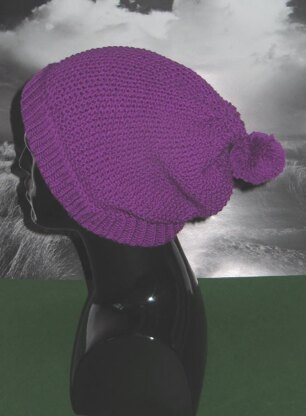 Rib Cuff Moss Stitch Bobble Slouch Hat (Seed Stitch)