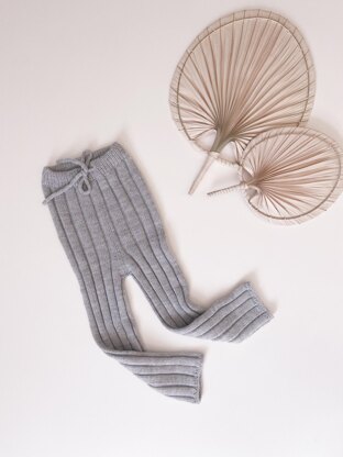 The pants are worked from top-down in the round. The waist ribbing is started as a provisional cast on, then folded and connected. Then short rows are worked to shape the back rise.