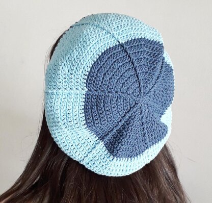 The beanie is made with two (or more) colors of a size 2 sport weight yarn (approximately 150 meters/165 yards of color A, and 75 meters/82 yards of color B), with 4mm(US G-6) and 3mm(US D) hooks.