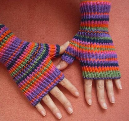 I knit these simple ribbing mitts with gore thumb from the leftover of 100 g self-striping sock yarn after socks of size 38/39 had been knitted from it.