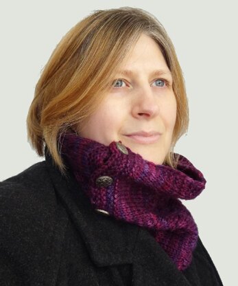 The Ribbon and Rings Cowl uses a single skein of lovely aran or worsted weight yarn. It is an efficient stash buster as well as a lovely project that can either be given as a gift or worn by the knitter as an unusual and flexible cowl.