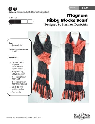 Ribby Blocks Scarf in Cascade Yarns Magnum - B270 - Downloadable PDF