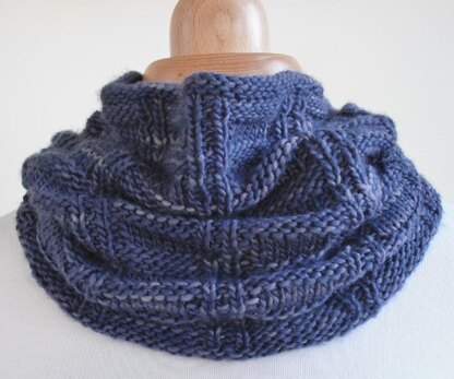 A super soft snuggly cowl with a ridged design. This is a straightforward make and suitable for someone new to knitting provided they can join and work in the round. As made, it requires a soft thick double knit yarn - Berroco Lustra is ideal. The sample is made using The Natural Dye Studio’s Godiva DK yarn which is 100% pure merino and superbly soft, which makes it very warm. The finished size is 56cm (approx. 22½”) around by 25cm (approx. 10”) deep when blocked. You can adapt the pattern to suit your required size or even change the yarn weight, some ideas for this are given at the end of the pattern.